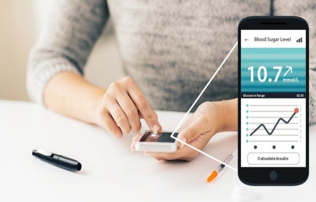 A mobile application will be installed on the device, which will display a graph of changing sugar levels on the screen.